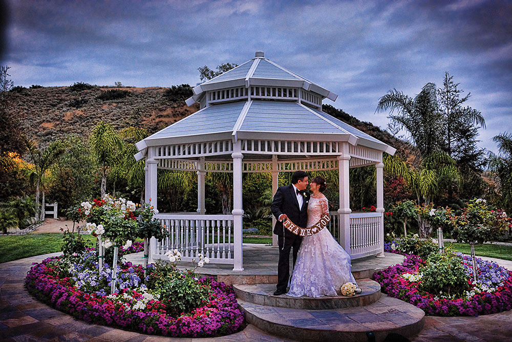 Moorpark Country Club offers two serene and tranquil Ceremony locations: The expansive white Gazebo, and an intimate clearing in Mother Nature’s splendor that surrounds the happy couple, complete with manicured flowerage and lighted pepper trees for a magical setting.